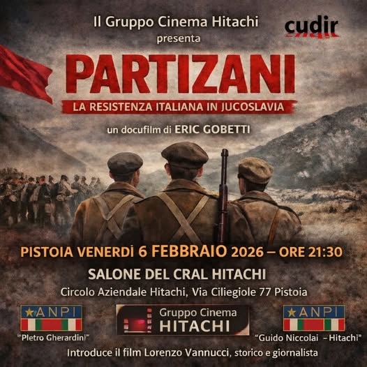 Proiezione del docufilm di Eric Gobetti  "Partizani. La Resistenza italiana in Jugoslavia" a cura del Gruppo Cinema Hitachi r Cudir del Comune di Pistoia con ANPI sezione "Pletro Gherardinl"