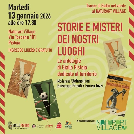 Per il ciclo “Tracce di giallo nel verde”, presso Naturart Village si terrà "Storie e misteri dei nostri luoghi. Antologie di Giallo Pistoia dedicate al territorio". Stefano Fiori, Giuseppe Previti ed Enrico Tozzi ci guideranno in un viaggio tra le antologie curate nelcorso negli anni dall' associazione Giallo PIstoia e dedicate al territorio.