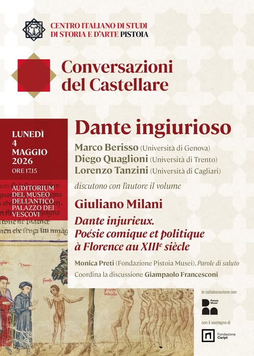 Milani presenta il volume "Dante injurieux. Poésie comique et politique à Florence au XIIIe siècle". A partire dl volume sarà  ripercorsa la tenzone fra Dante e Forese Donati, lo scambio dei sei sonetti velenosi e infamanti,