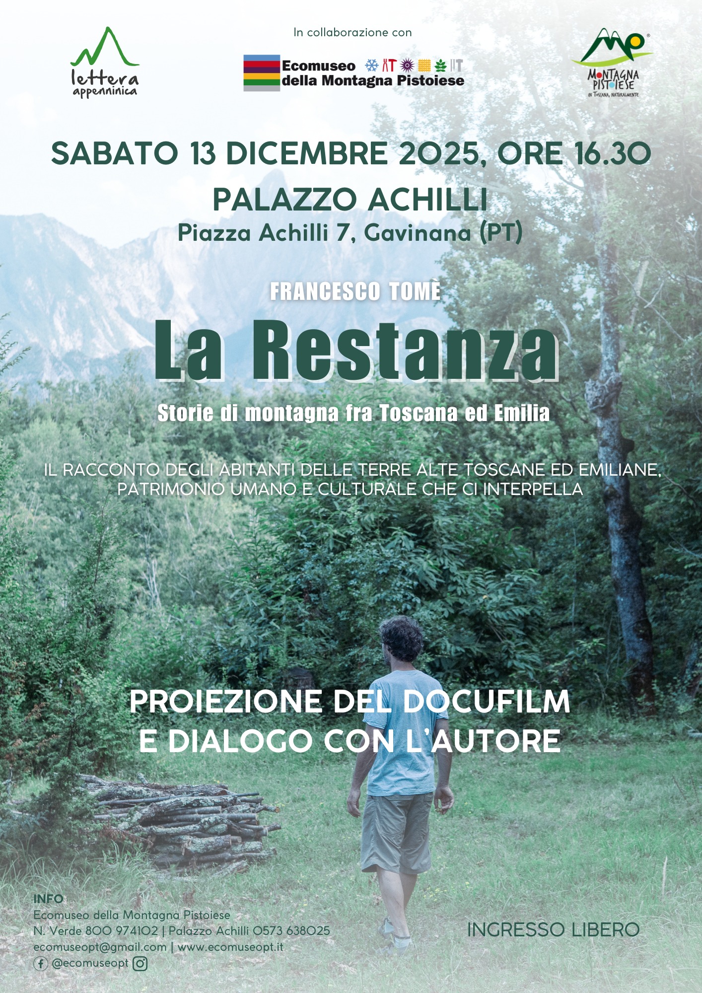 A Palazzo Achilli a Gavinana, proiezione del film La Restanza: storie di montagna fra Toscana ed Emilia di Francesco Tomè (Italia, 2024) e incontro con l'autore
