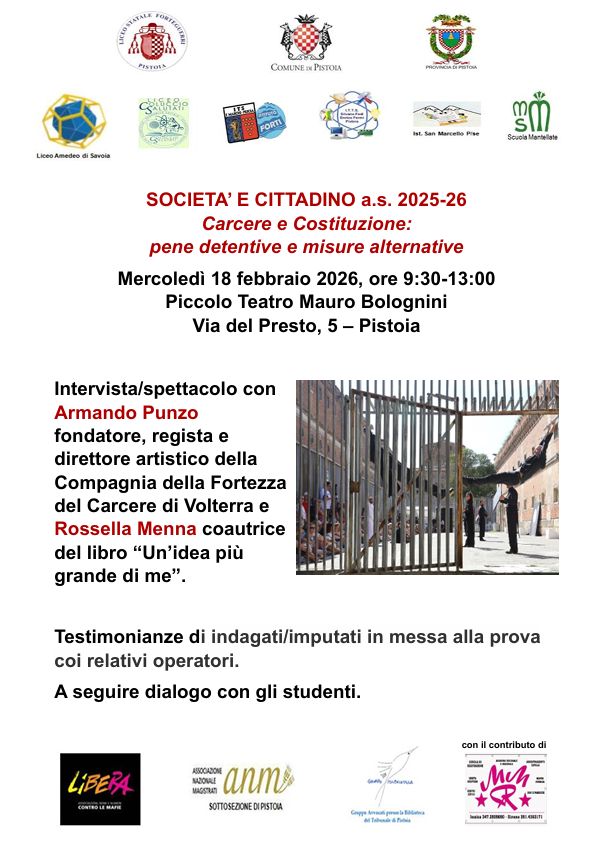 Gli studenti e le studentesse assisteranno ad uno spettacolo con Armando Punzo, fondatore, regista e direttore artistico della Compagnia della Fortezza del Carcere di Volterra e Rossella Menna, coautrice del libro “Un’idea più grande di me”.