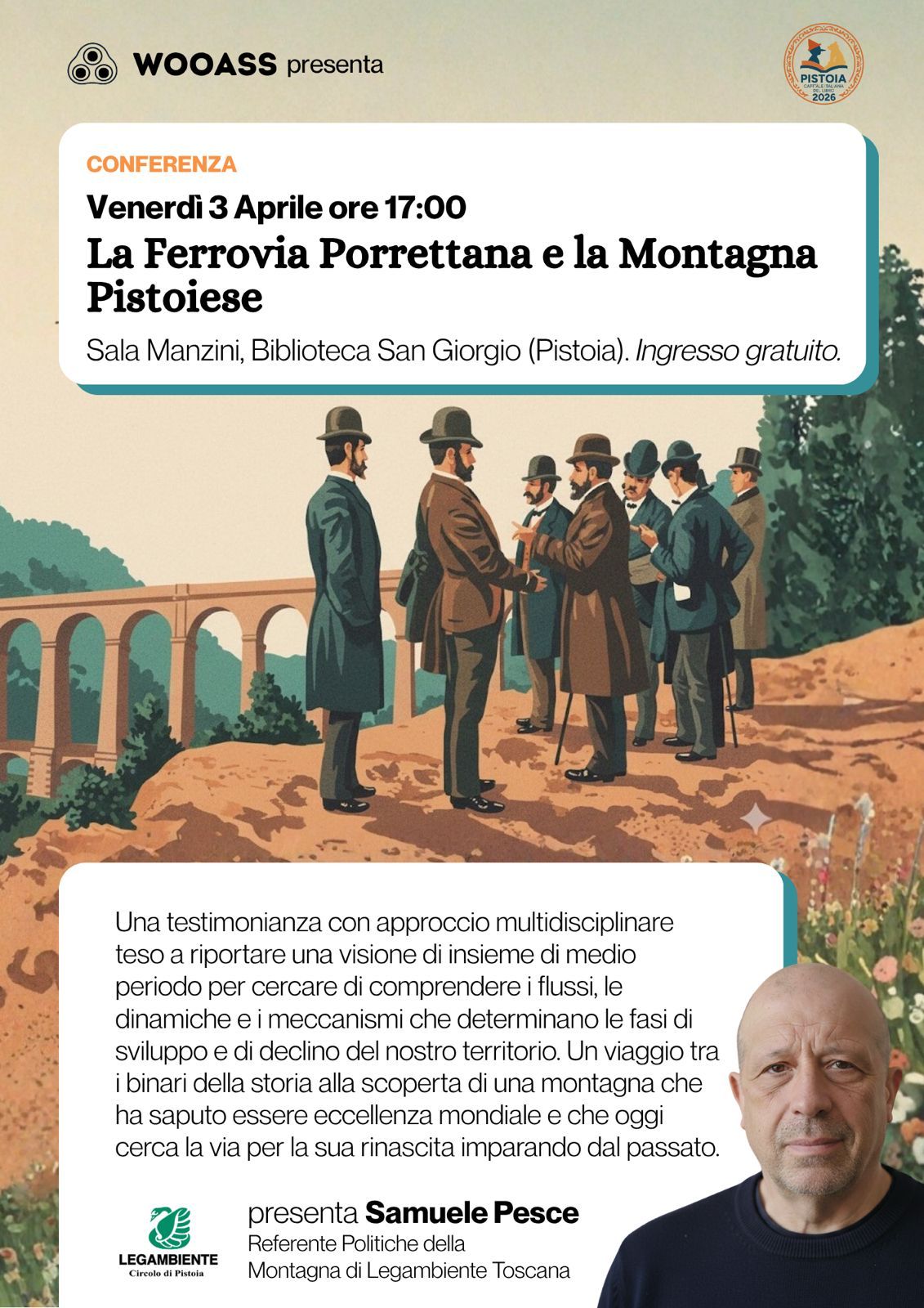 In Sala Manzini della Biblioteca San Giorgio, conferenza di Samuele Pesce "La Ferrovia Porrettana e la Montagna Pistoiese. Dall’eccellenza al declino alle prospettive di rinascita"