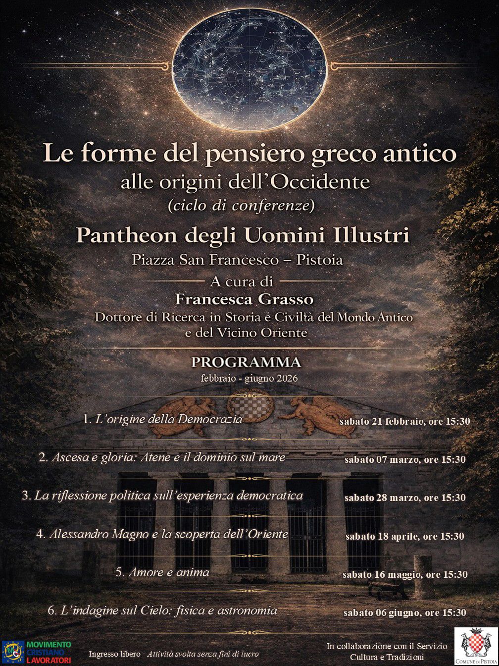 Il ciclo organizzato dal Movimento Cristiano Lavoratori con il Comune di Pistoia e rientra negli eventi di Pistoia Capitale Italiana del libro 2026