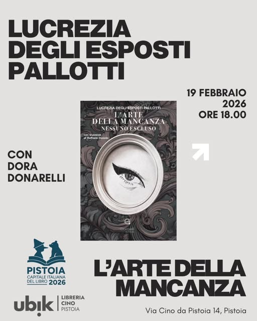 Incontro con Lucrezia Degli Esposti Pallotti che parlerà del suo libro "L'arte della mancanza. Nessuno escluso" (Giacovelli. 2025) per provare a capire, insieme, cosa sia la "mancanza": dolore? Rinascita? Vuoto o possibilità?