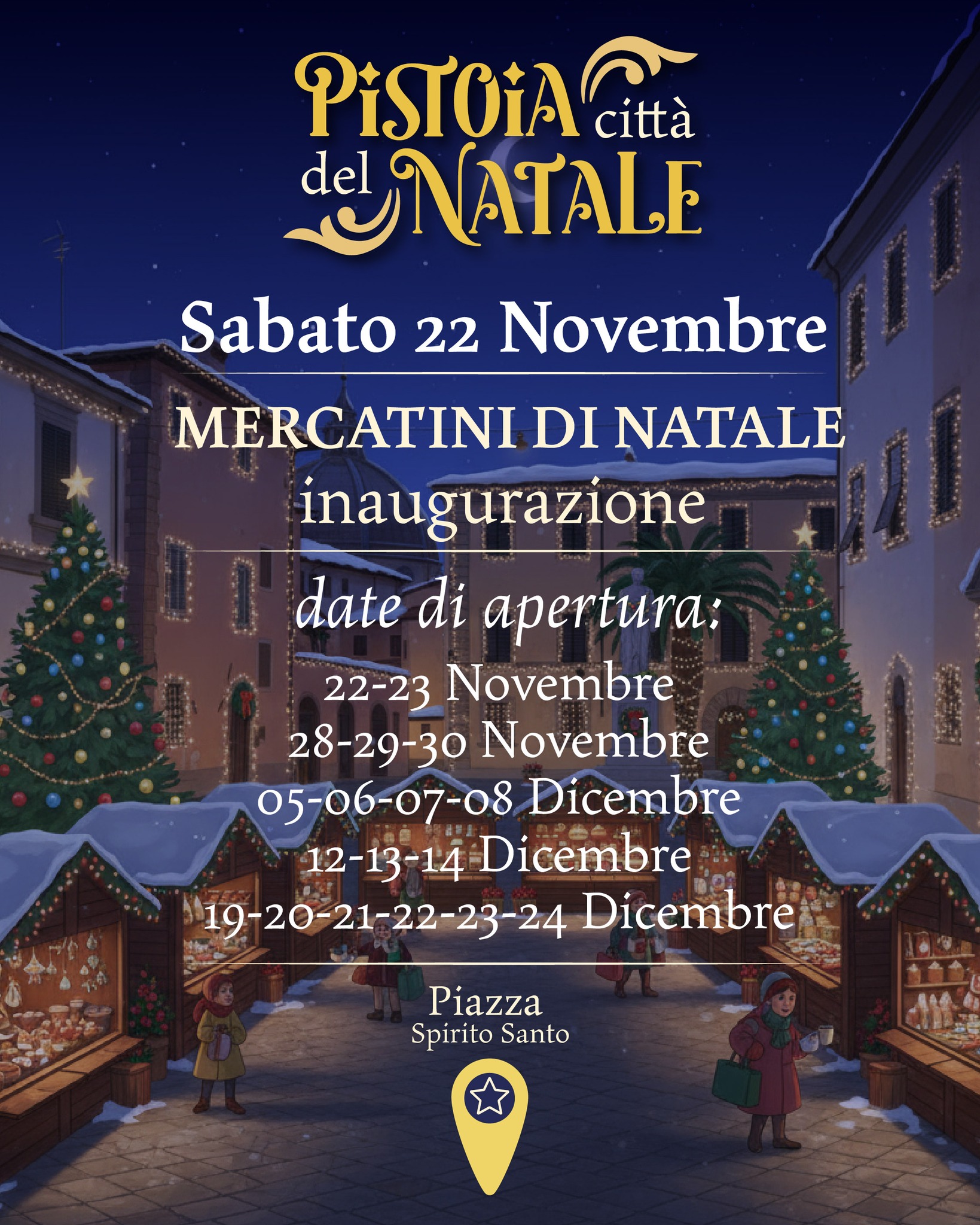 Sabato 22 Novembre saranno inaugurati i mercati del Natale che saranno presenti fino al 24 dicembre nei seguenti giorni di apertura