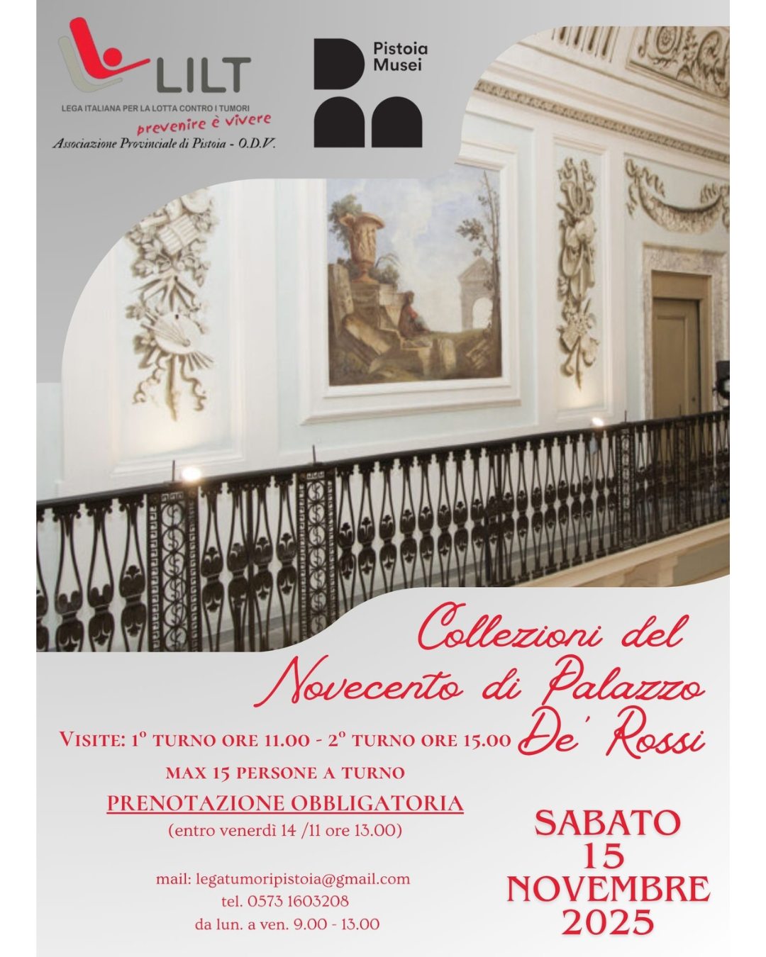 Prenotazione: 0573 1603208 o via mail a legatumoripistoia@gmail.com (entro il 17 novembre)