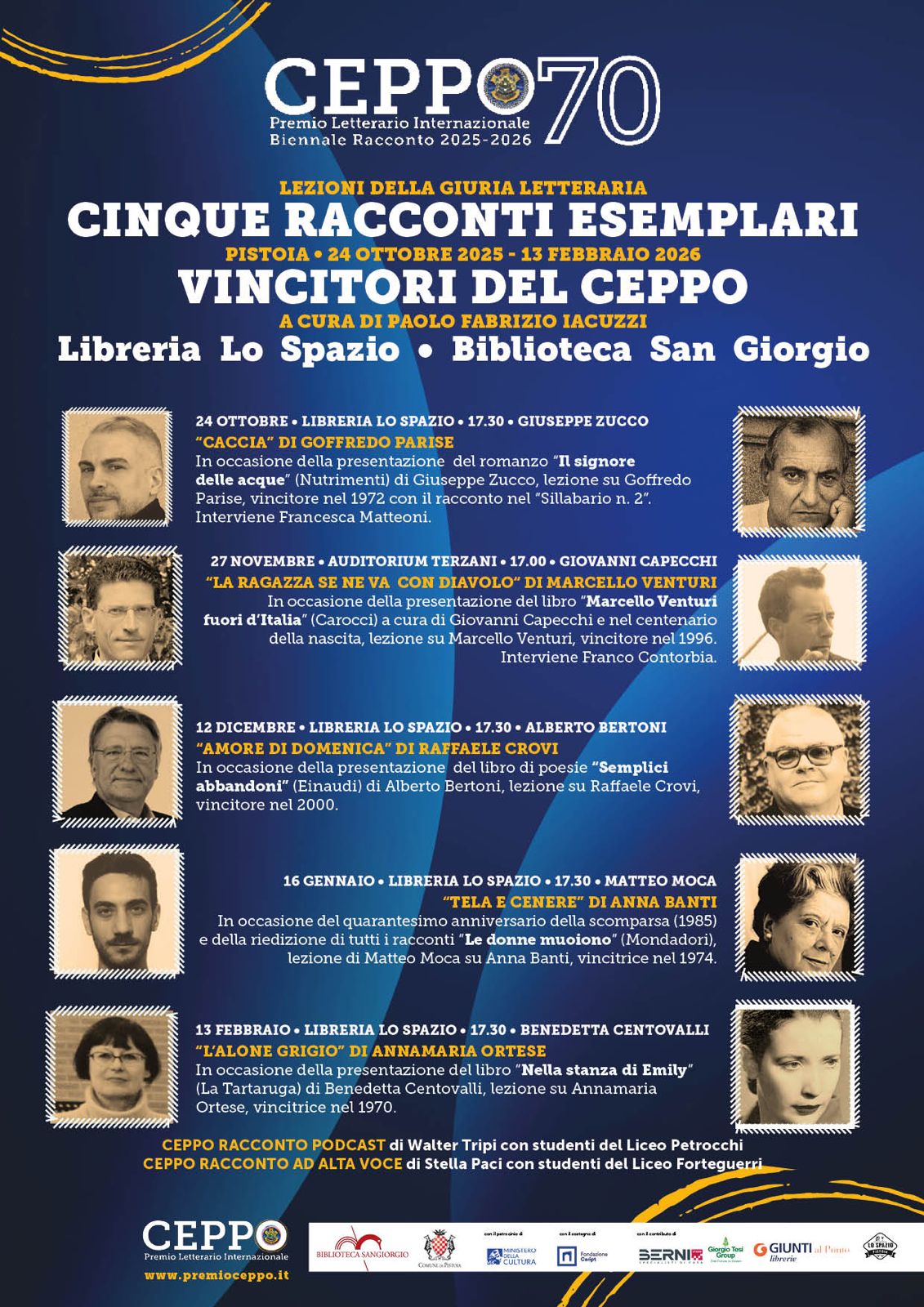 Il Premio Internazionale Ceppo celebra i suoi 70 anni di attività e Pistoia Capitale Italiana del Libro 2026 con un ciclo di lezioni tenute dai membri della Giuria Letteraria.