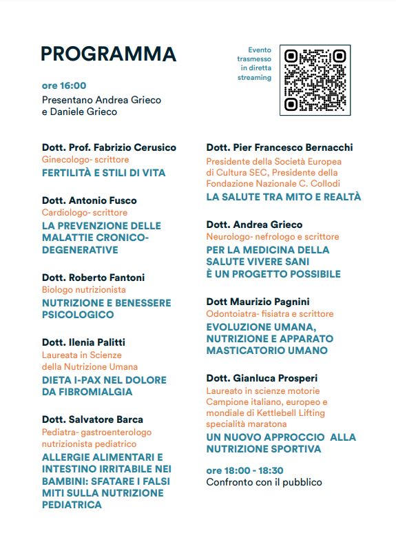 In Sala Maggiore del Palazzo comunale, dalle 16.00 alle 18.30, si terrà il convegno "Per una Medicina rinnovata: prima della malattia, verso la salute". Previsti numerosi interventi di medici ed esperti