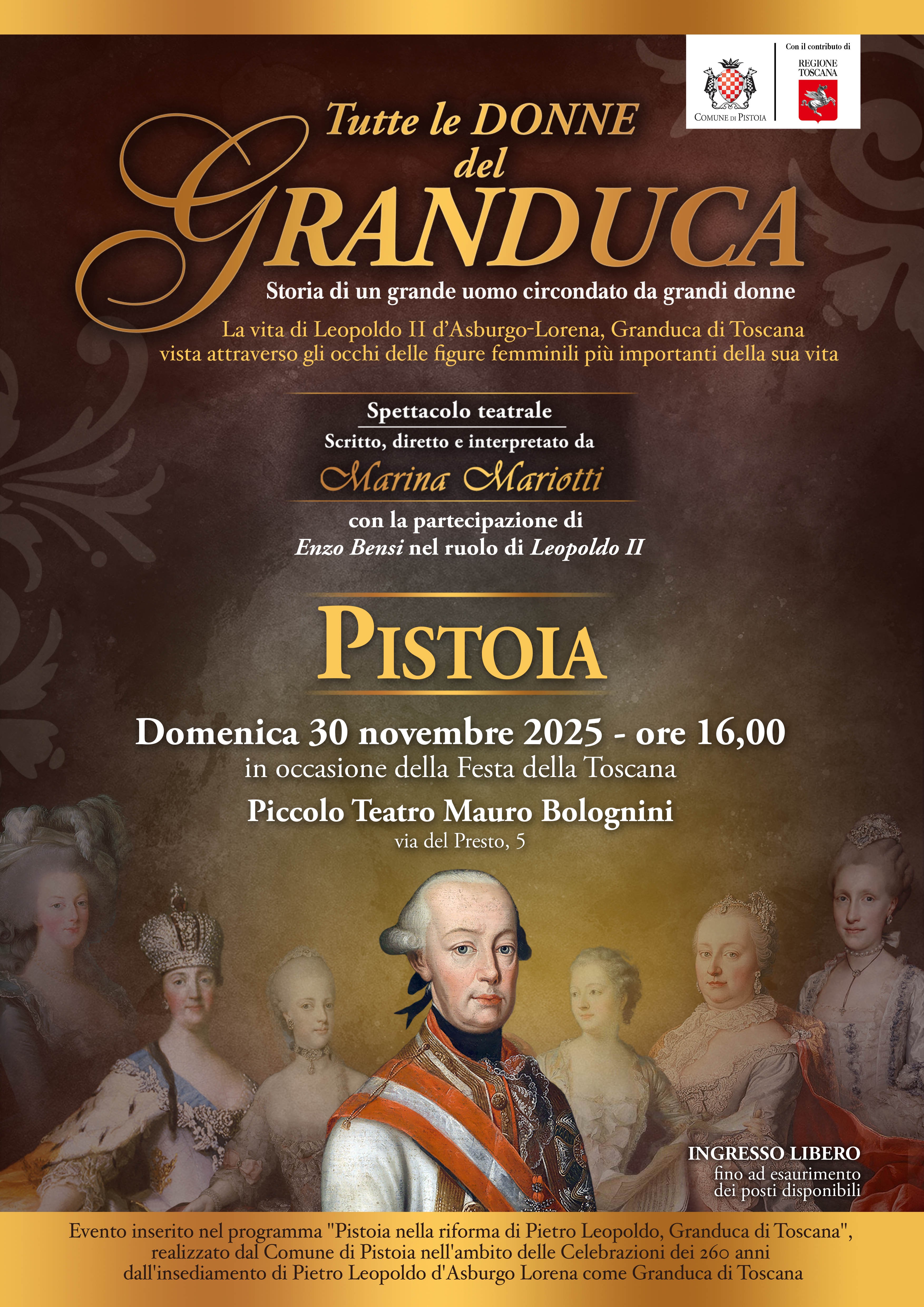 Narra la storia del Granduca Leopoldo attraverso le parole delle donne che hanno avuto un ruolo significativo nella sua vita e nella storia italiana ed europea: la madre Maria Teresa, imperatrice d’Austria, la sorella Maria Antonietta, regina di Francia, la sorella Maria Carolina, regina di Napoli, la moglie Maria Luisa di Borbone-Spagna, la rivale politica Caterina la Grande, zarina di Russia e l’amante prediletta Livia Raimondi.
