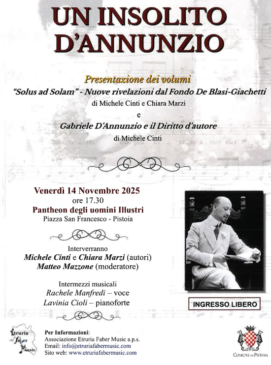 Venerdì 14 novembre, alle 17.30 al Pantheon di piazza San Francesco, presentazione di due volumi dedicati a Gabriele d'Annunzio: